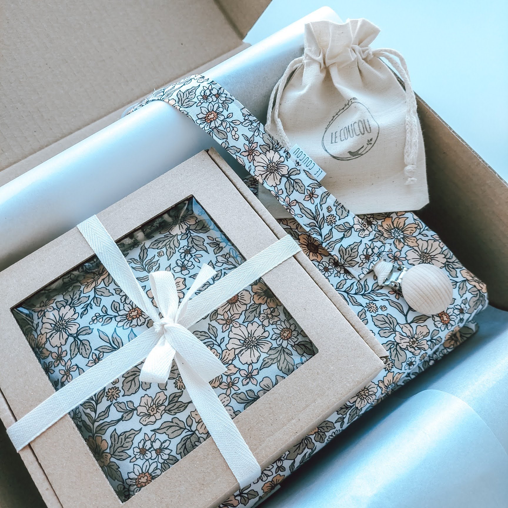 Zestaw wyprawkowy to gotowy pomysł na nietuzinkowy podarunek, zapakowany jak na zdjęciu.