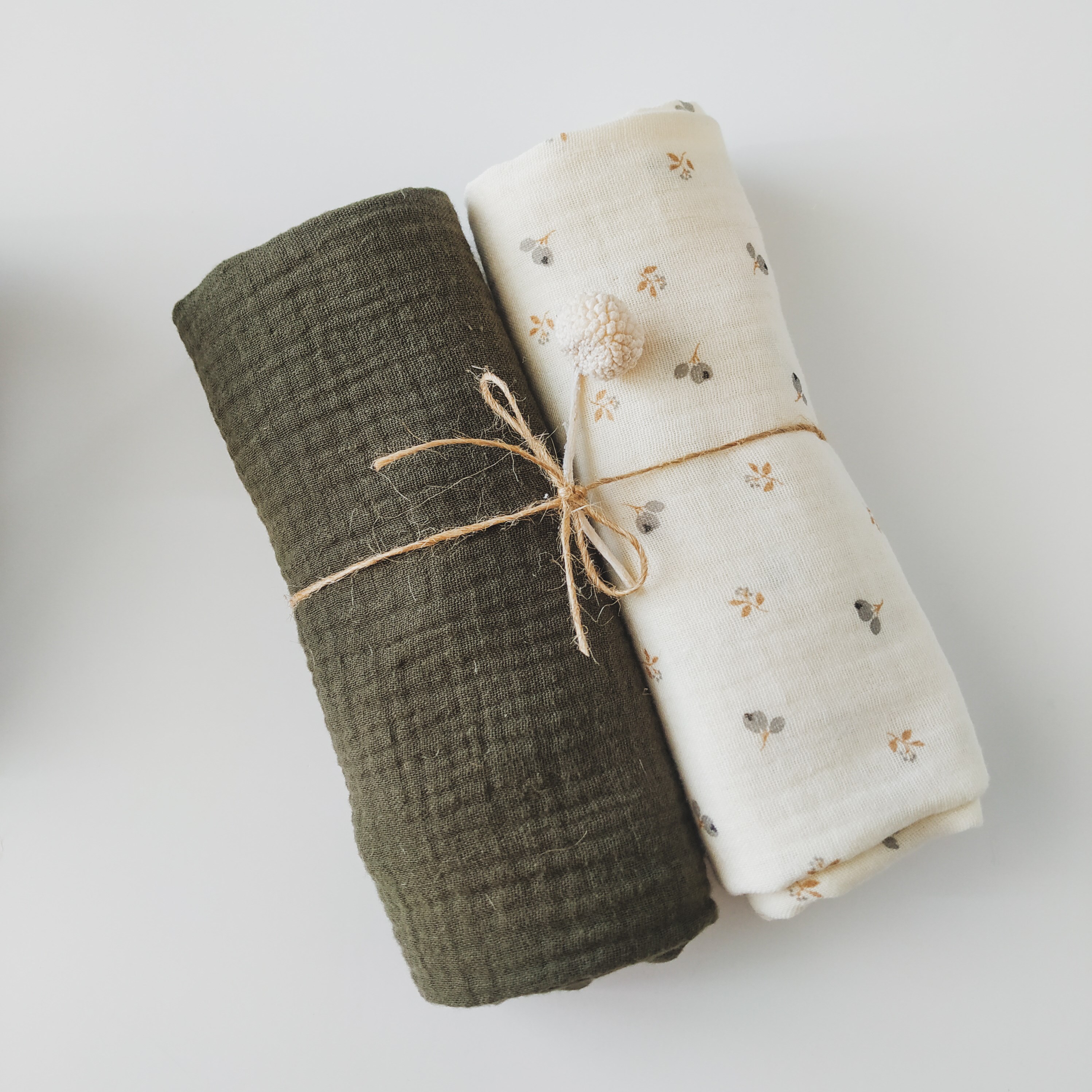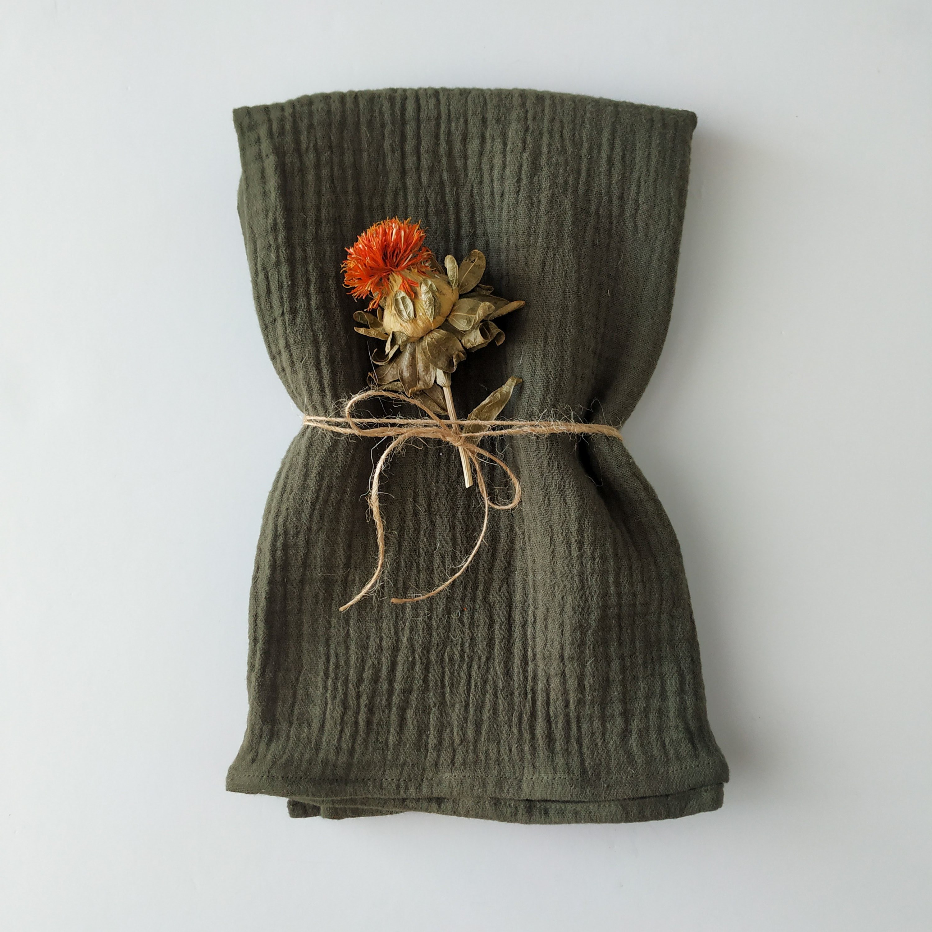 Pieluszka wykonana z bardzo delikatnej bawełny typu "double gaze" w kolorze khaki.