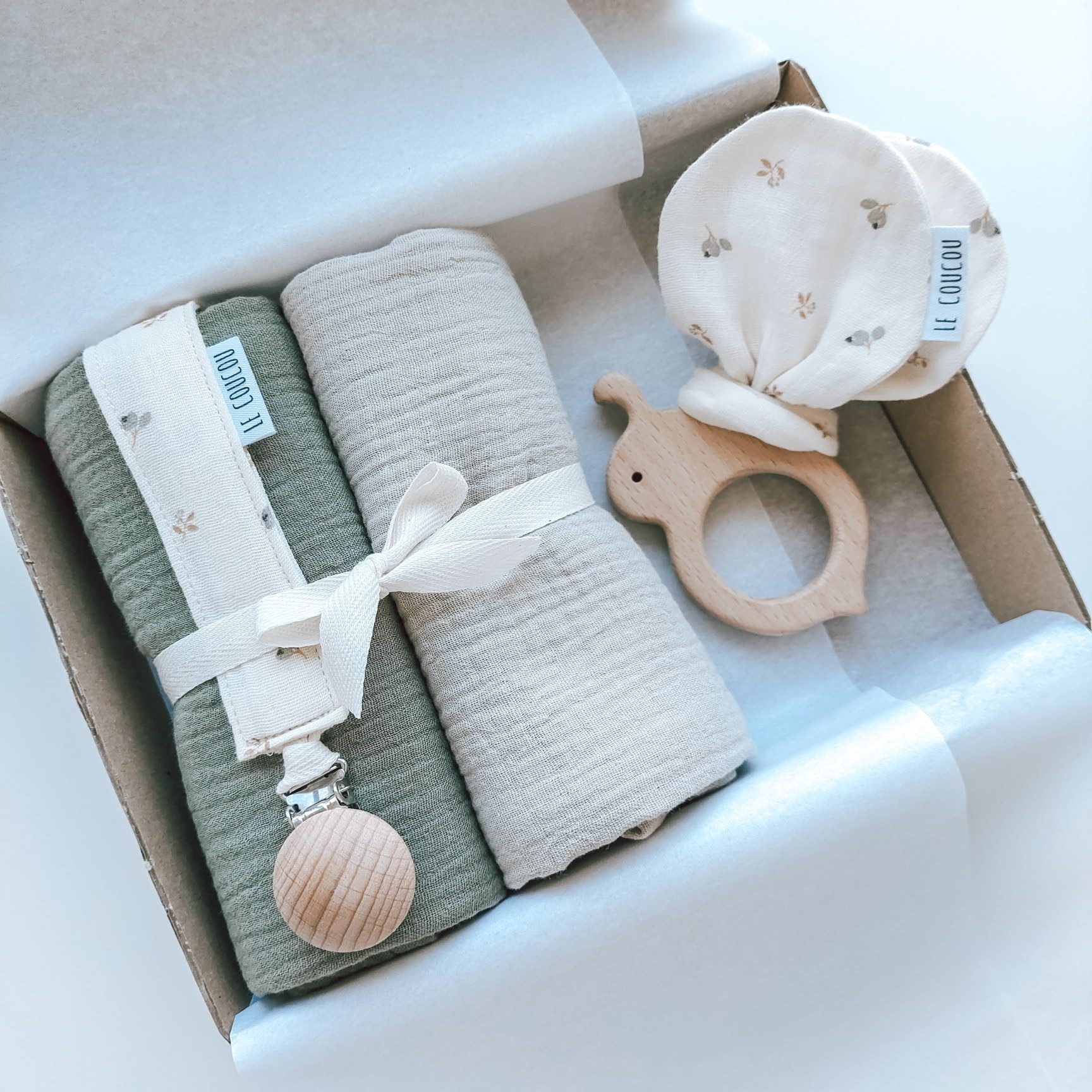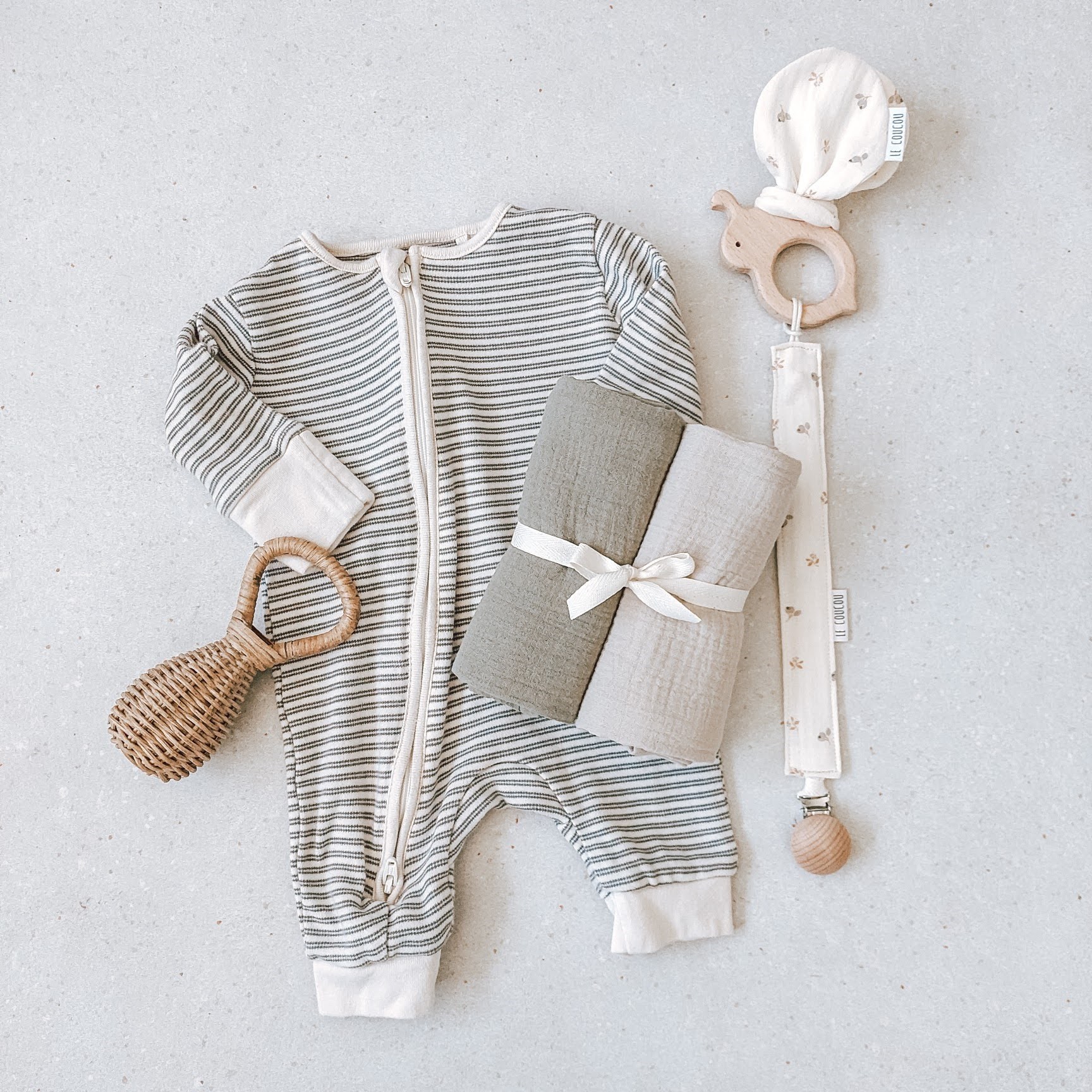 Zestaw wyprawkowy to gotowy pomysł na nietuzinkowy podarunek, zapakowany jak na zdjęciu.