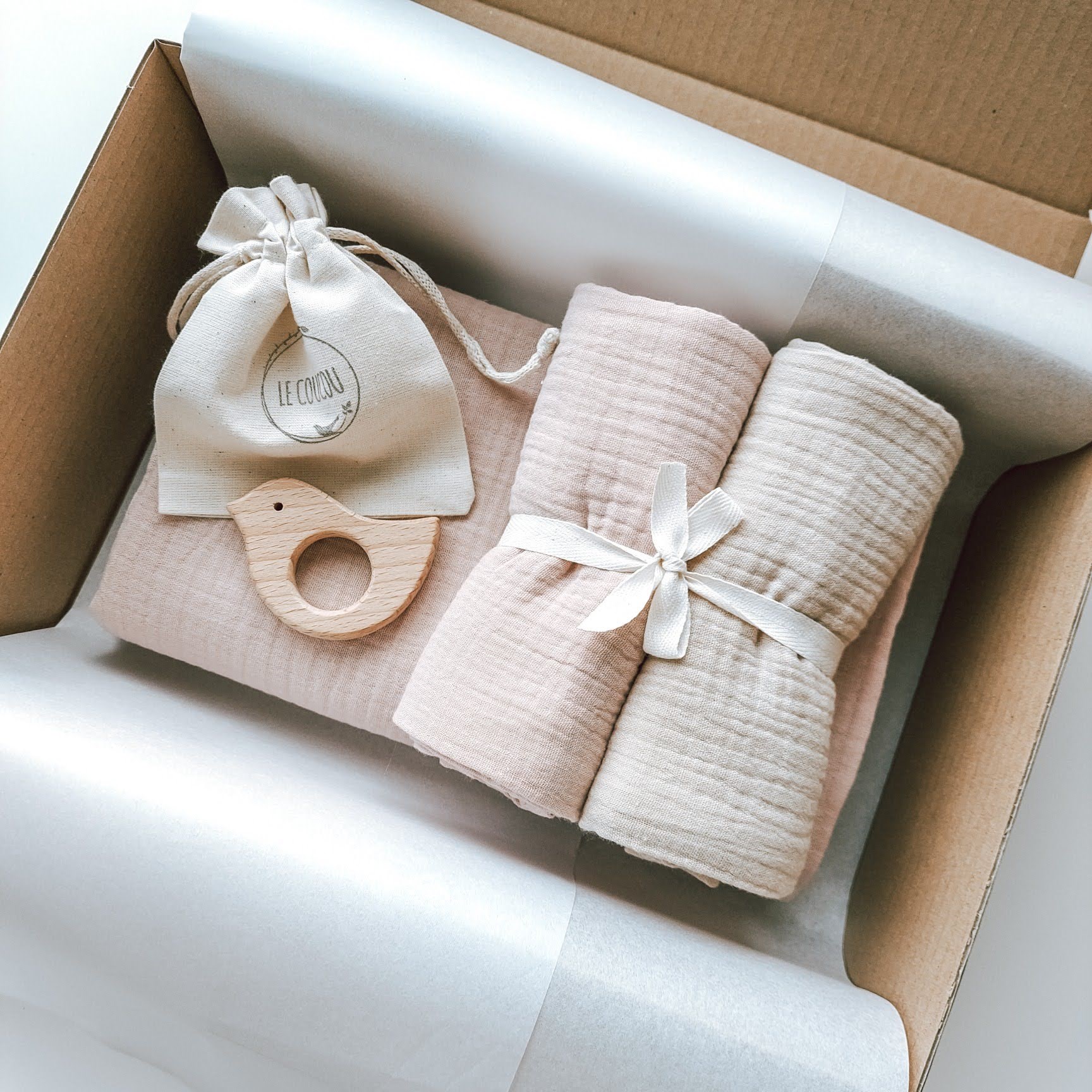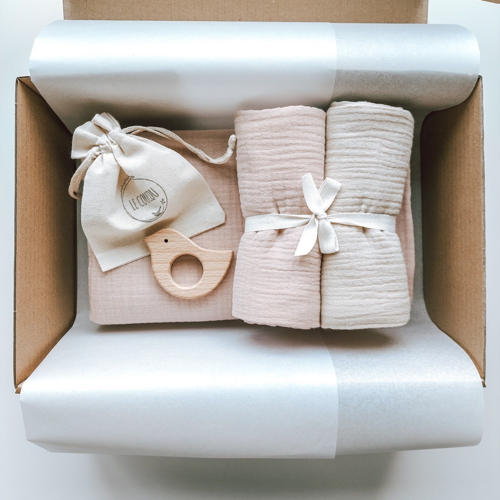 Zestaw wyprawkowy to gotowy pomysł na nietuzinkowy podarunek, zapakowany jak na zdjęciu.