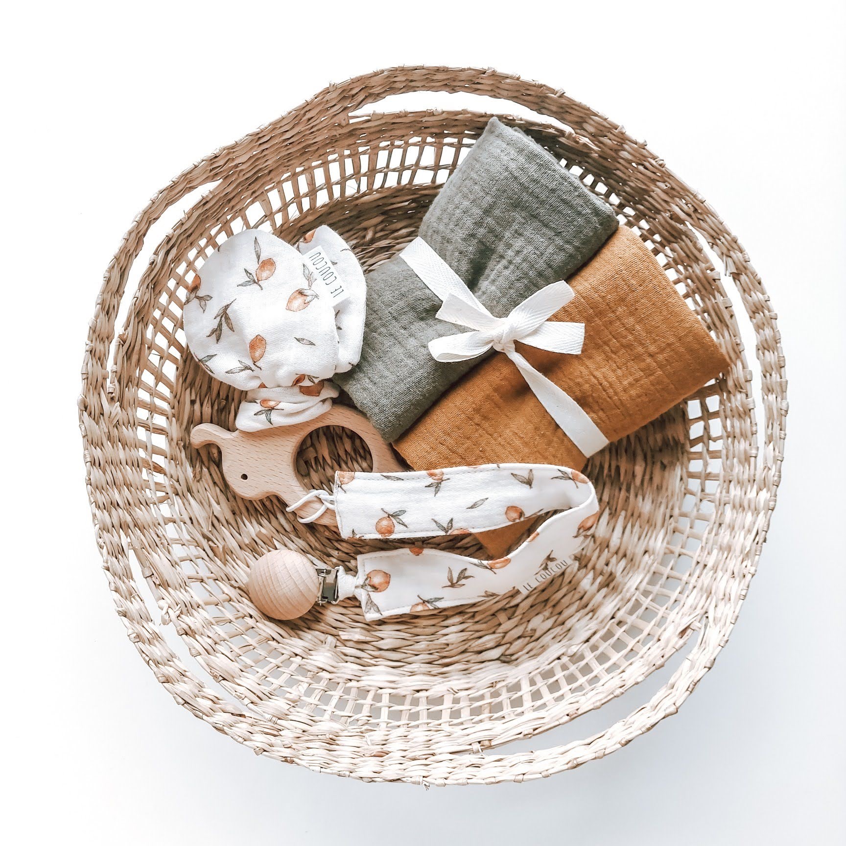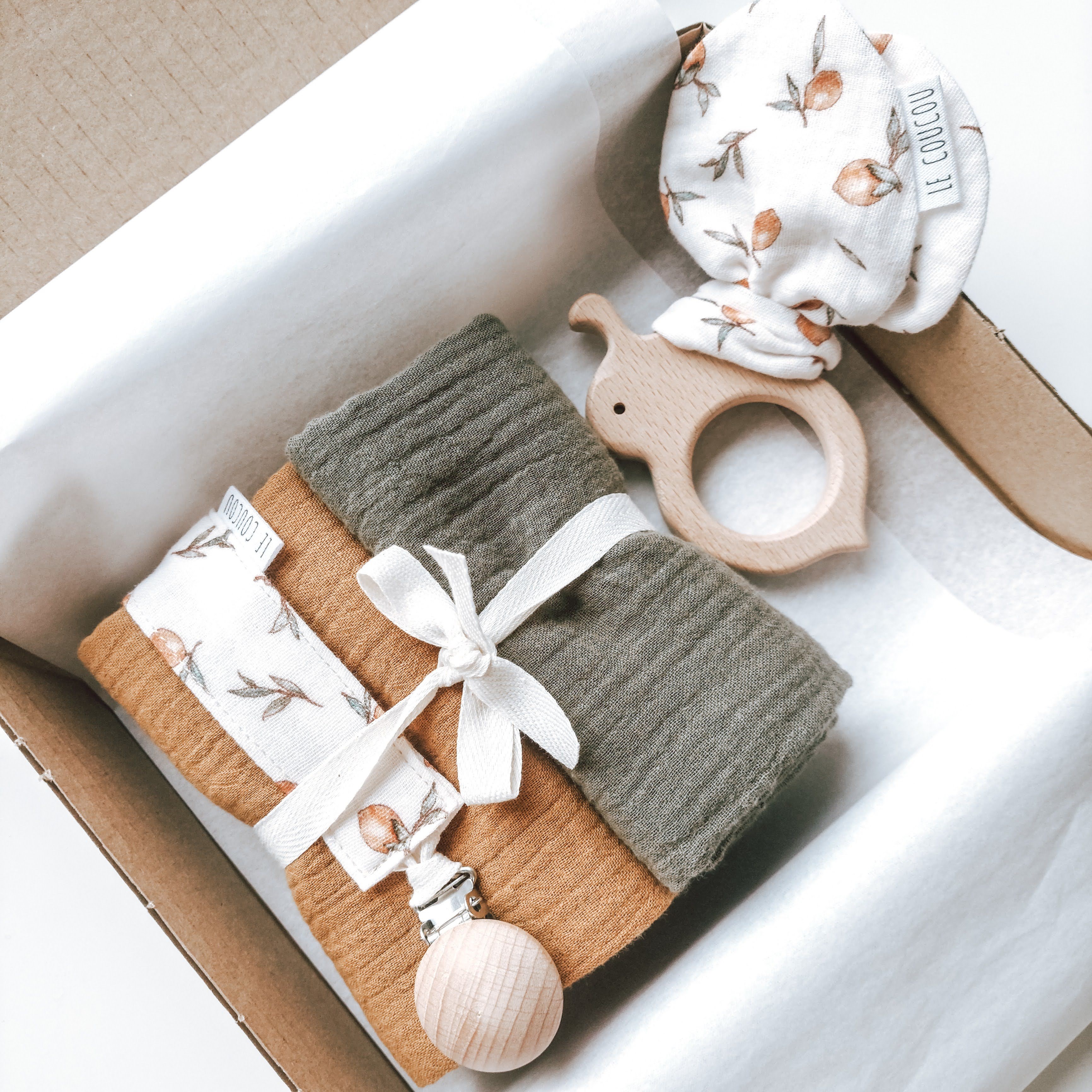 Zestaw wyprawkowy to gotowy pomysł na nietuzinkowy podarunek, zapakowany jak na zdjęciu.